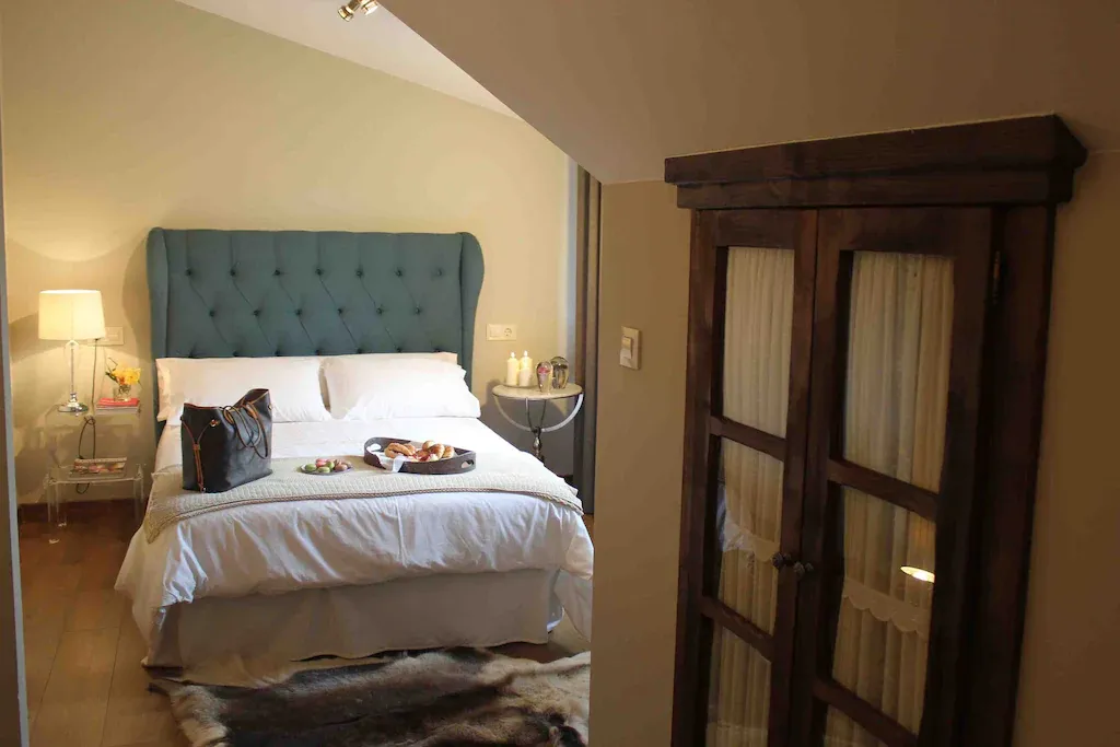 Cada elemento ha sido pensado y guarda detrás una bonita historia, la mayoría del mobiliario ha sido diseñado por los propietarios, Eva y Roberto, apasionados del diseño y los viajes, que han convertido la estancia en esta casa de campo en un verdadero hogar durante tus vacaciones.